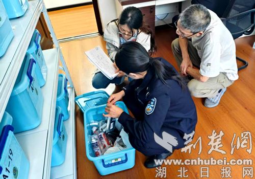 审核员检查与事件相关物品的存储和管理的场景。图片提供:通讯员