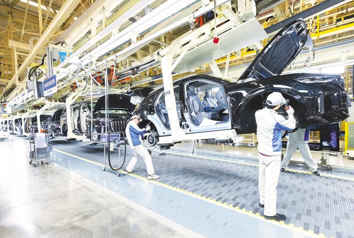 工人们在位于武汉经济开发区的兰州汽车数字化总装工厂的装配线上工作。 (湖北日报记者 柯浩 供图)